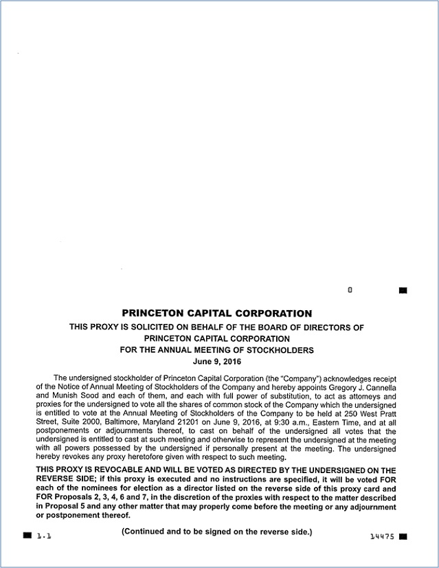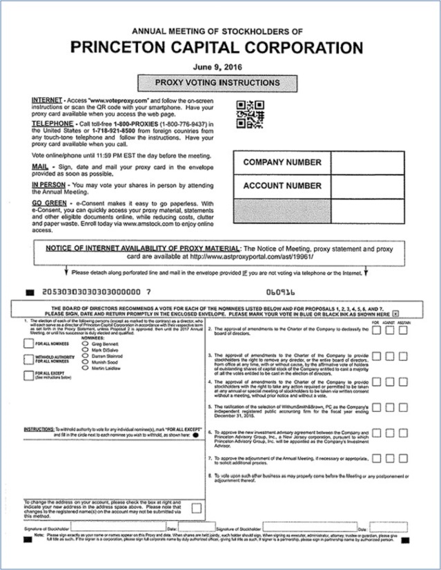 With the approval of the staff, Princeton Capital plans to include the revisions in response to the staff’s comment in the definitive proxy statement.