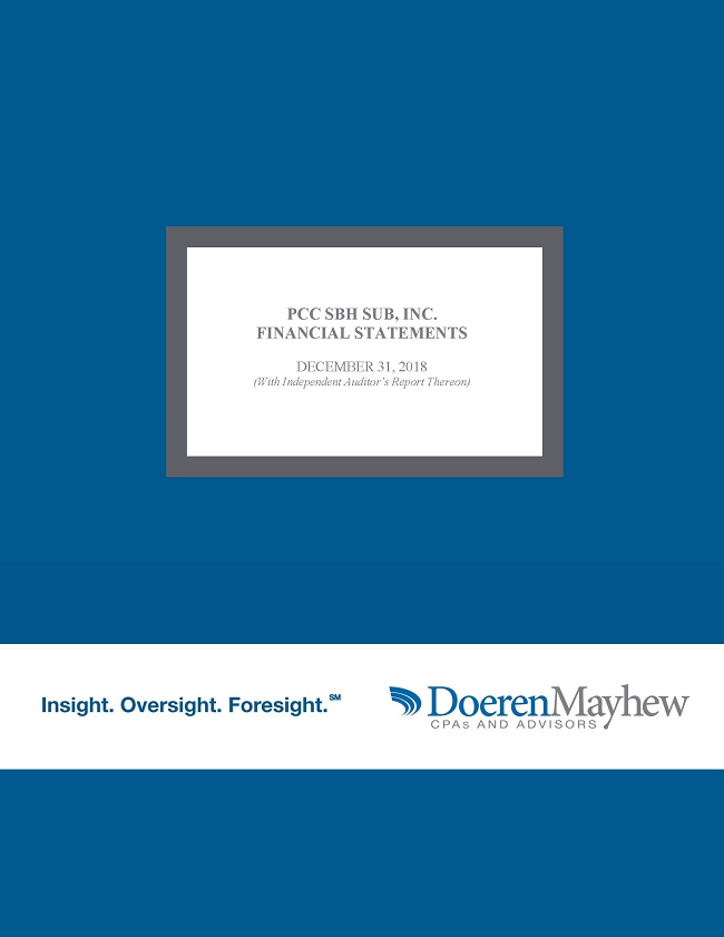 We have audited the accompanying financial statements of PCC SBH SUB, Inc, which comprise the balance sheet as of December 31, 2018, and the related statements of operations, stockholders’ equity and cash flows for the year then ended, and the related notes to the financial statements.